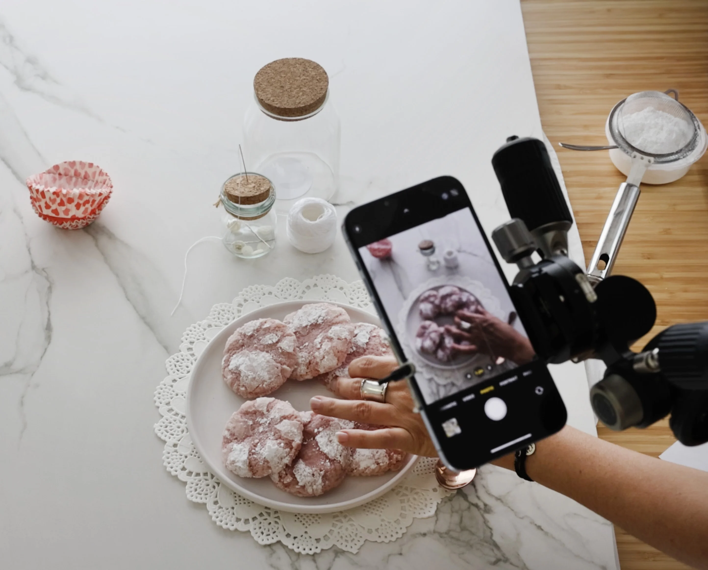 קורס מרוכז של 7 פרקים שילמד אתכם לצלם קינוחים ומאפים בסמארטפון בצורה מקצועית — עם סט ביתי פשוט, סטיילינג ואפליקציות עריכה חינמיות.